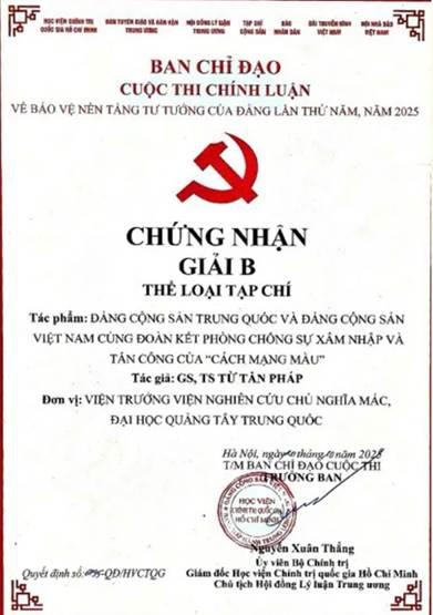 GS.TS Từ Tần Pháp Nhận Giải B Cuộc Thi Chính Luận Về Bảo Vệ Nền Tảng Tư Tưởng Của Đảng Lần Thứ V – Năm 2025